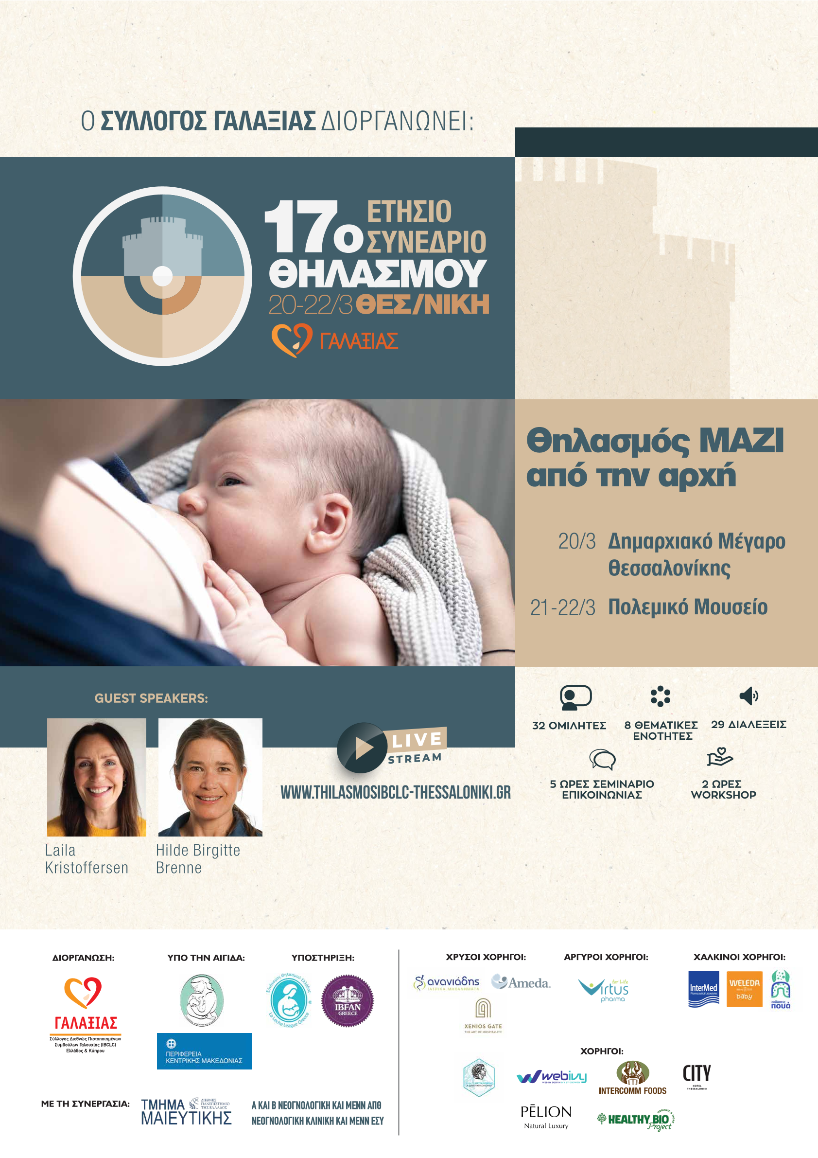 Ο Γαλαξίας, ο Σύλλογος Διεθνώς Πιστοποιημένων Συμβούλων Μητρικού Θηλασμού, πιστός στην αξία της συνεχούς επιμόρφωσης των επαγγελματιών υγείας και του κοινού σε θέματα θηλασμού, διοργανώνει το 17ο ετήσιο συνέδριό του στη Θεσσαλονίκη στις 20 με 22 Μαρτίου με τίτλο Θηλασμός ΜΑΖΙ από την αρχή.